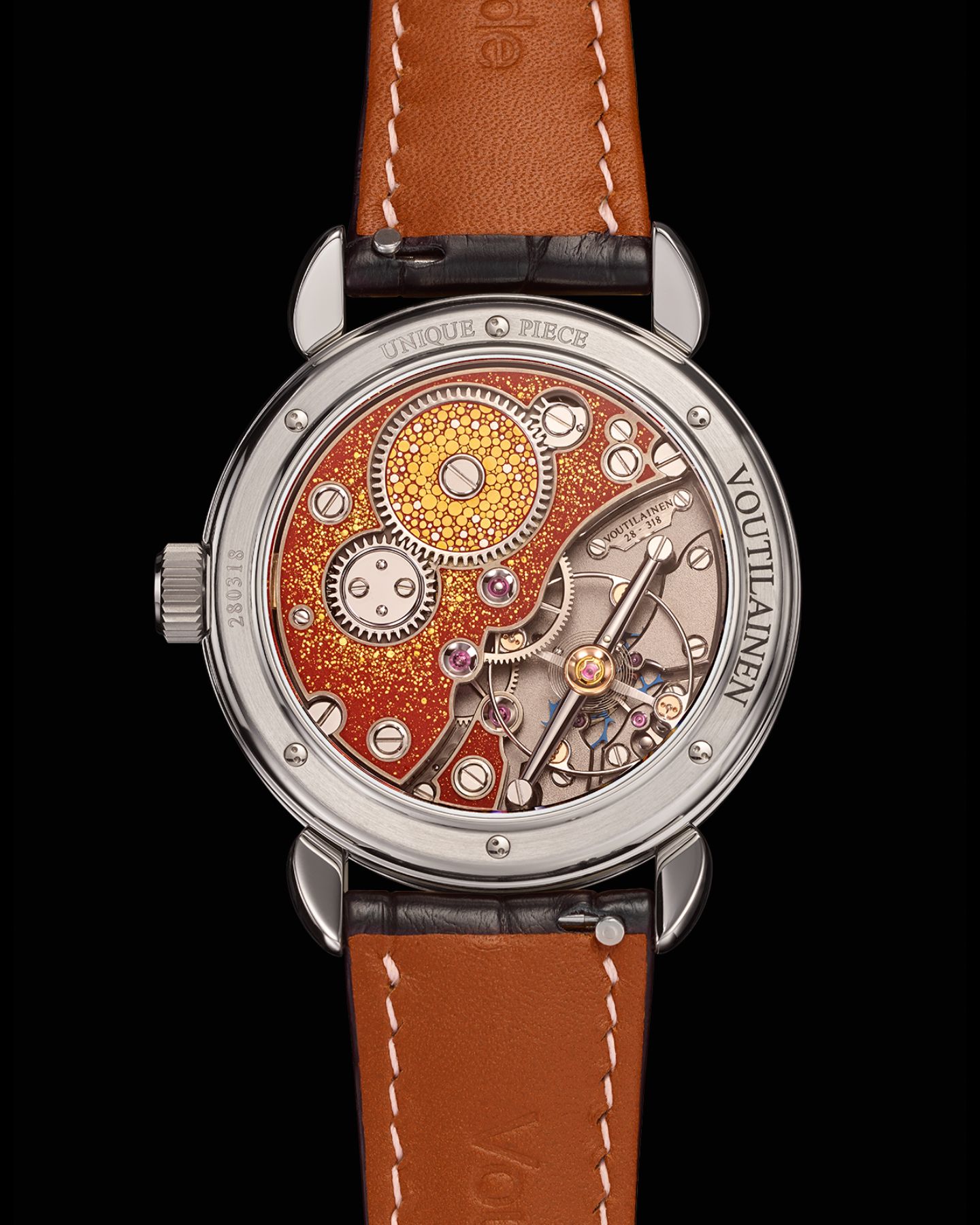 - Mouvement manufacturé en interne, deux roues d’échappement avec impulsion directe