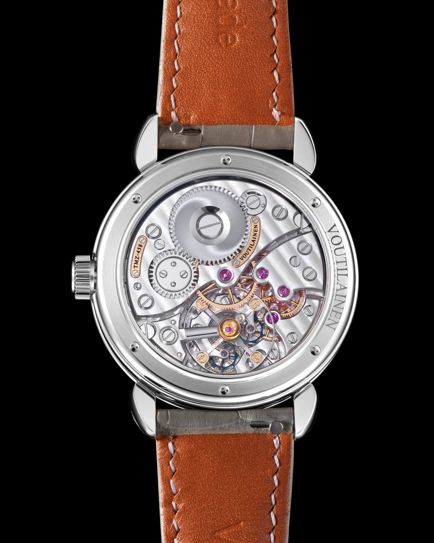 - Visible wheels made from solid 18K gold, remaining wheels of the gear train made from German-silver and escapement wheels made from steel