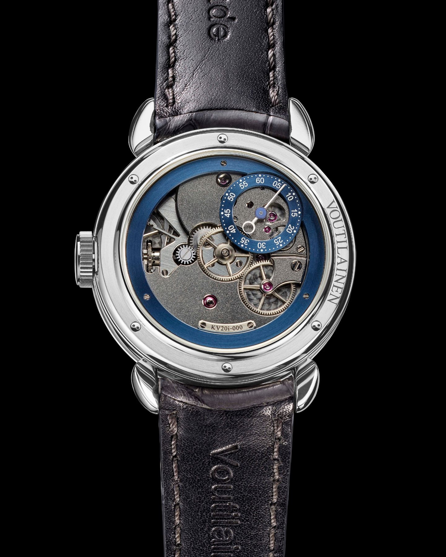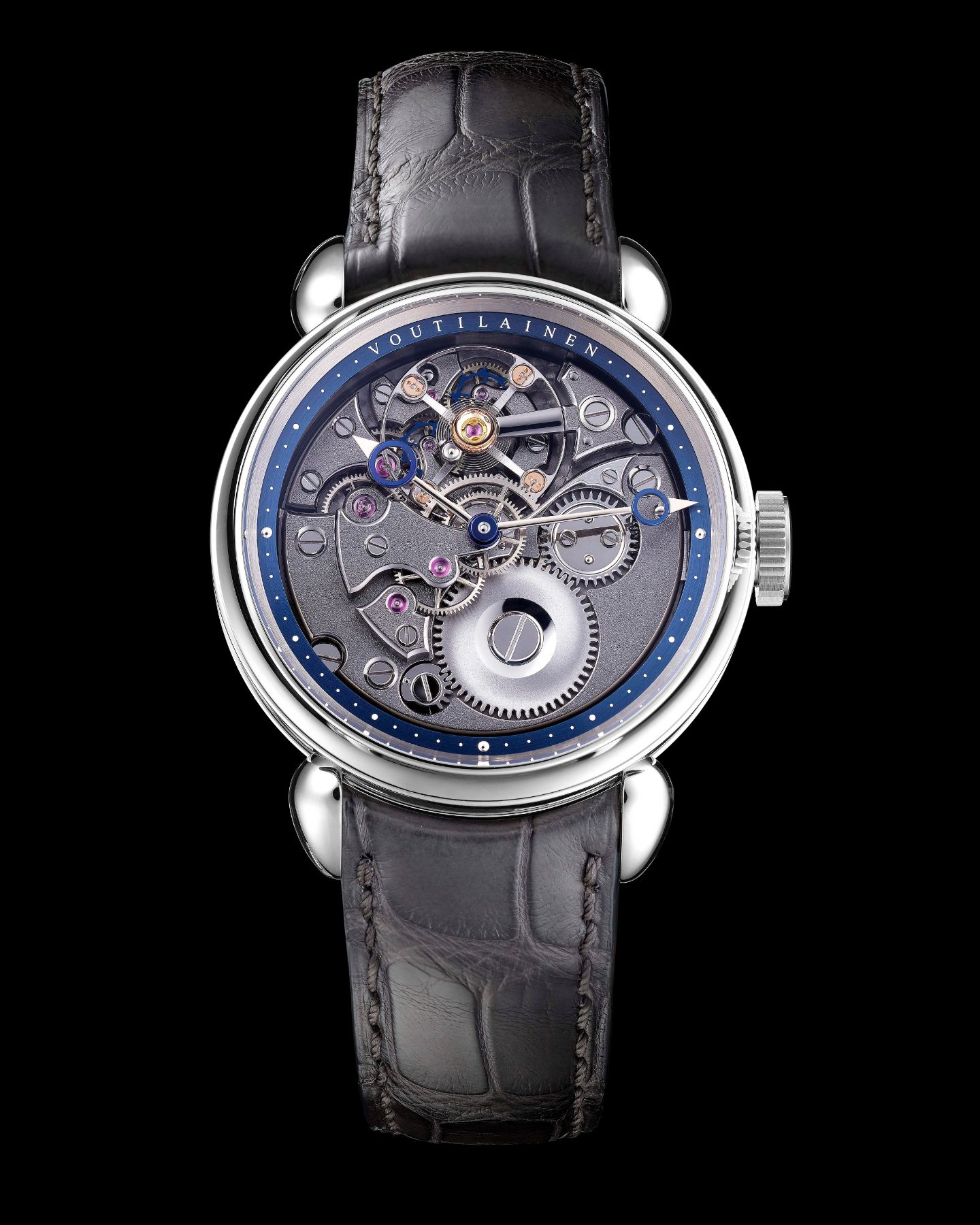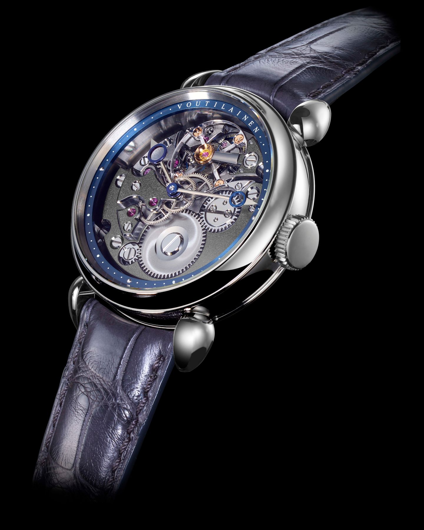 - New Voutilainen in-house reversed movement, two escapement wheels with direct impulse