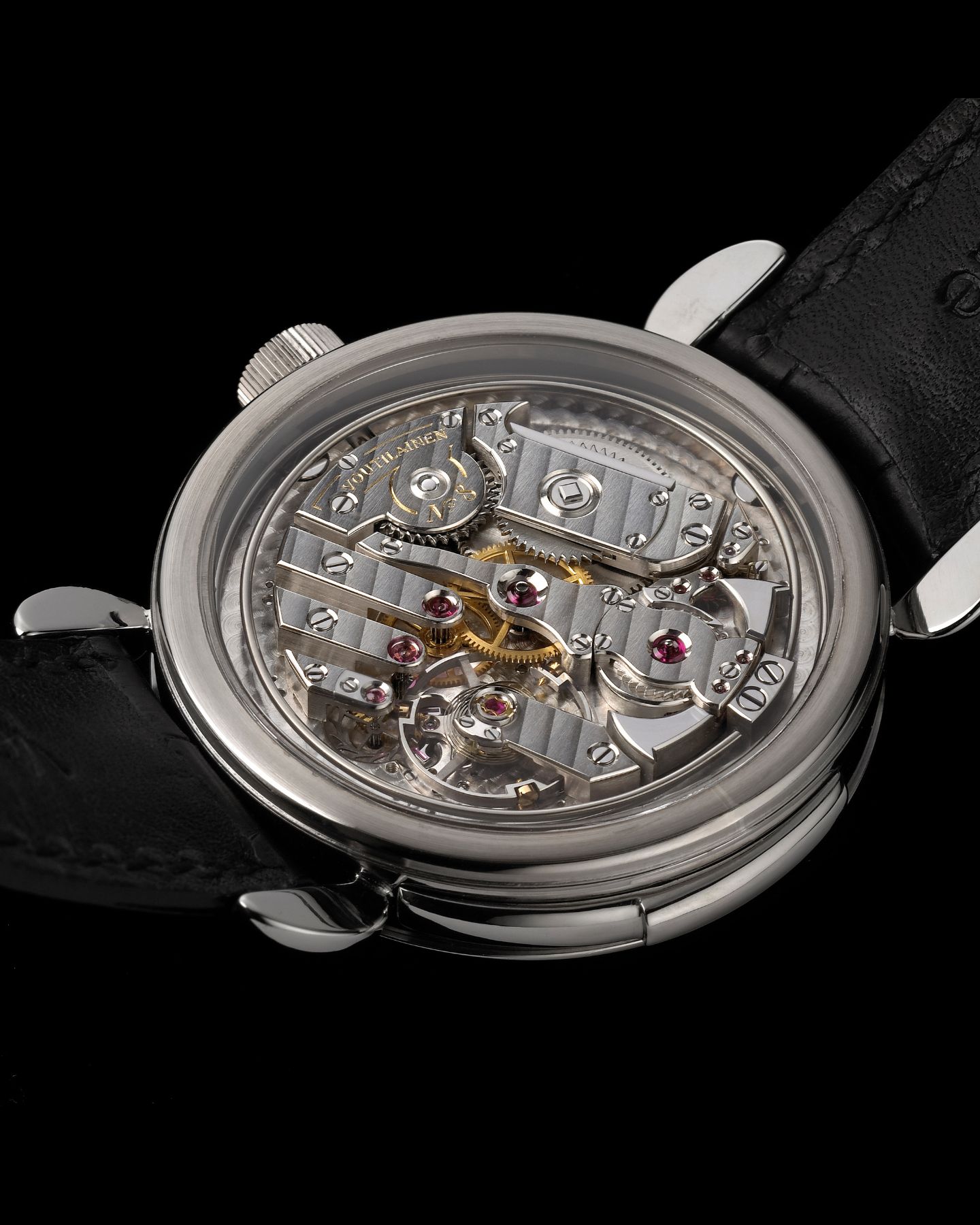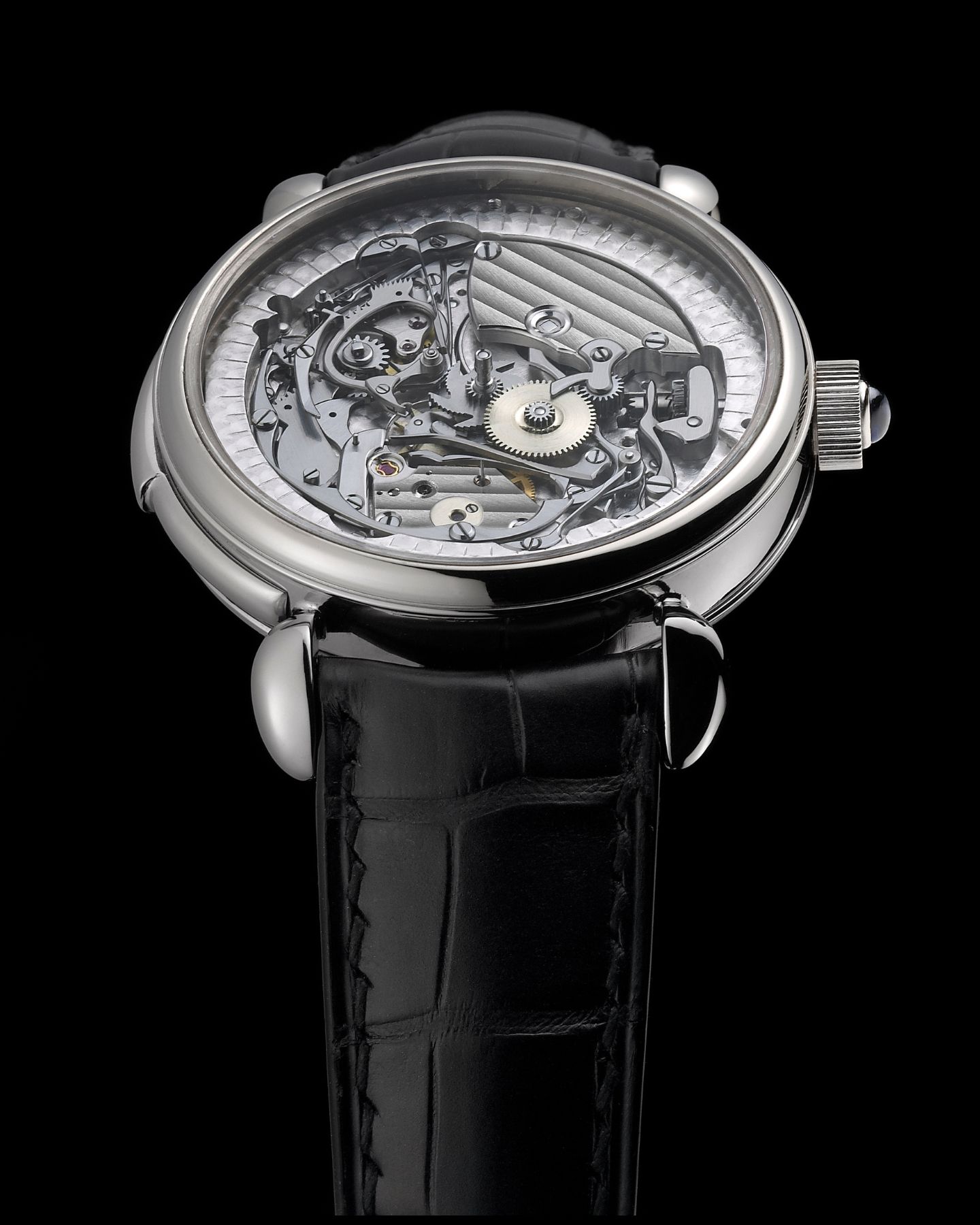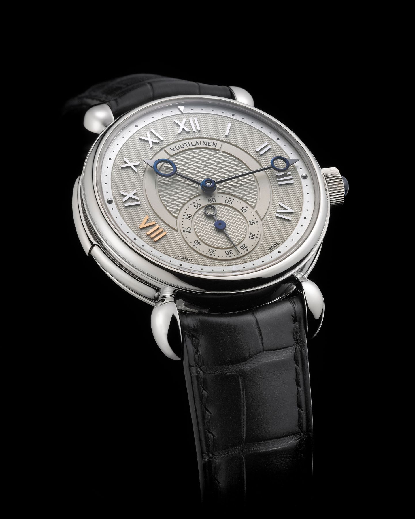 - Silver hand-guilloché dial with with gold applied numerals